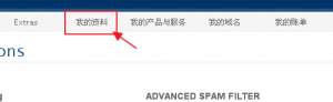 然后在WebHostingpad客户中心上面可以看到个人及产品的一些选项,找到“我的资料”选项,点击进入,如下图所示: