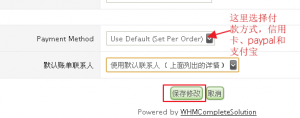 复选框中有三种付款方式:信用卡、PayPal和支付宝;根据自己的要求选择主机的付款方式,如果没有选择任何其中的一种,那么系统就默认是刚购买时的付款方式。确认好后点击保存修改按钮就可以了。